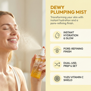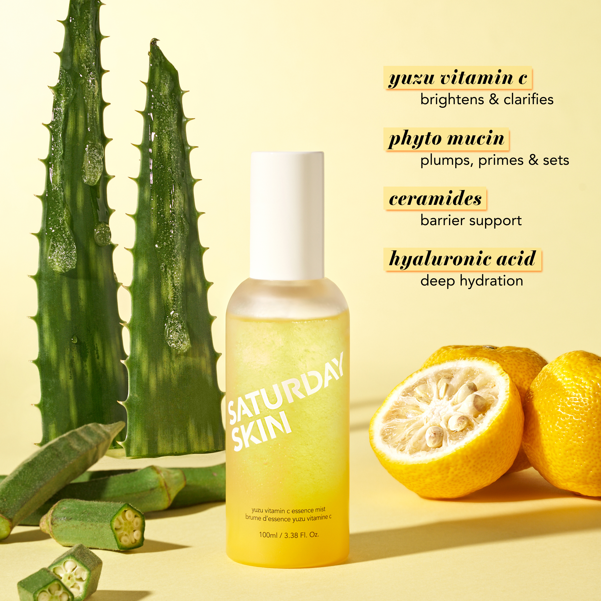 This dual-texture jelly essence mist bursts with brightening Yuzu Vitamin C, vegan Phyto-mucin, Hyaluronic Acid, Ceramides and Peptides to instantly hydrate, plump, and refresh skin. Use as a fine mist or press in as an essence for a dewy, glass-skin glow—before skincare or makeup, after makeup, or whenever your radiance needs a extra boost of glazed skin glow. ✨